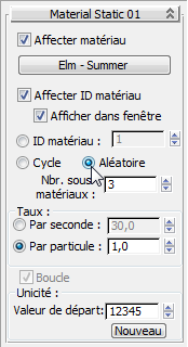 Remarque : Cette option n'est pas disponible si la valeur Nbr. sous-matériaux est supérieure à 1. Par conséquent, vous ne pouvez pas choisir ce paramètre tant que vous n'aurez pas affecté le matériau ormes à l'opérateur.