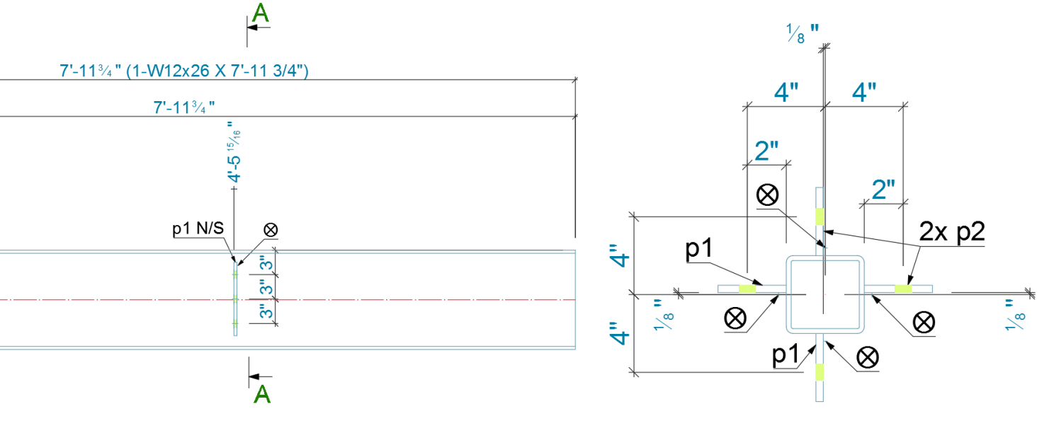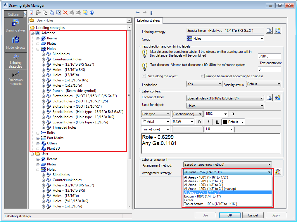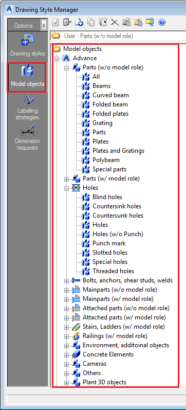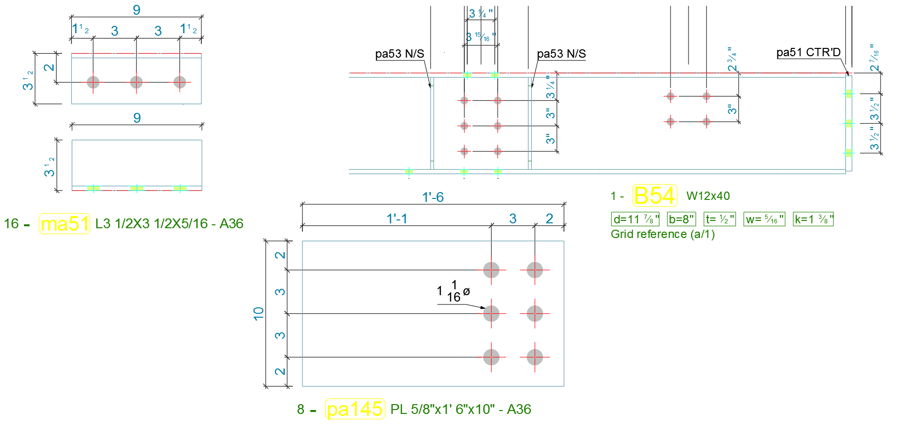 Cette modification a été effectuée sur les trous de pièces attachées, pour pointer uniquement vers un trou, dans les styles de dessin Poteau et Poutre :