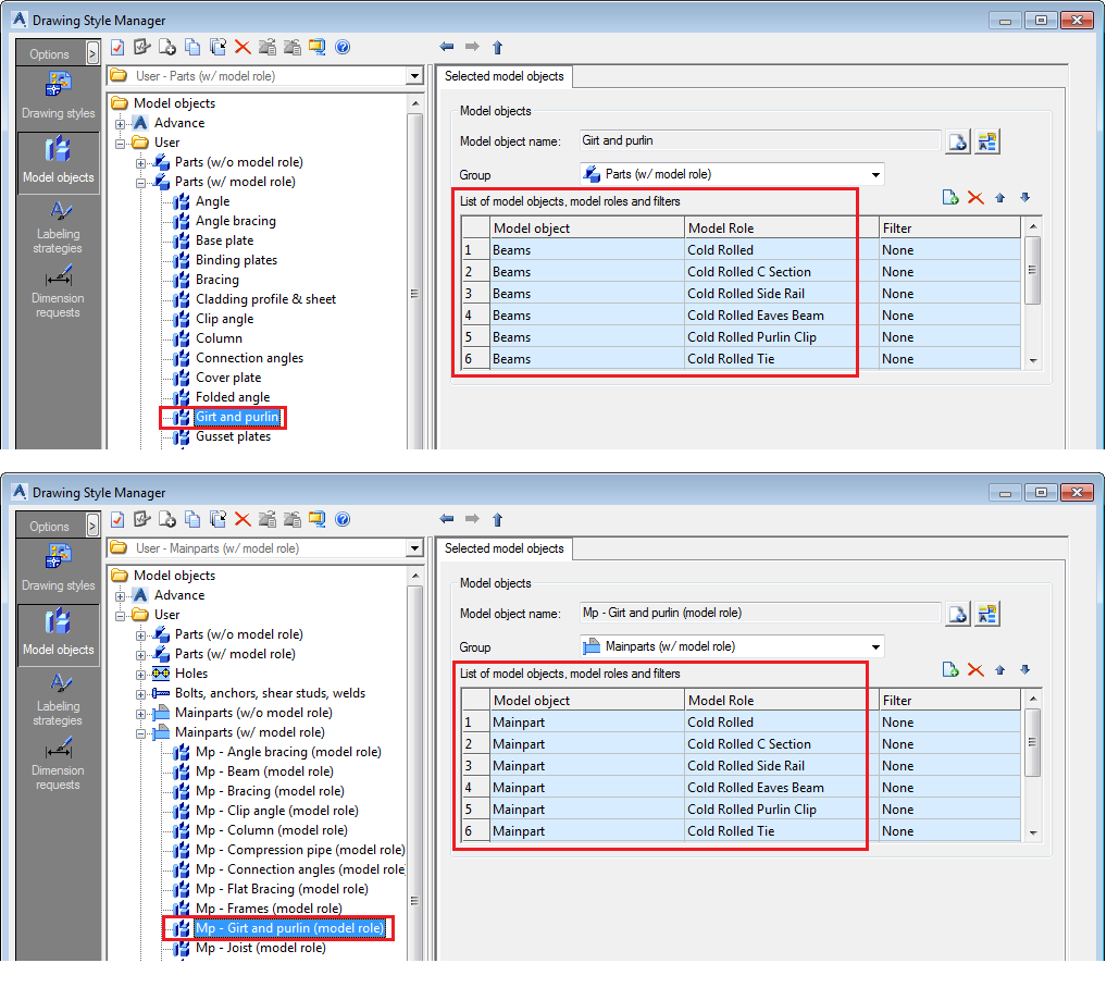Le nouveau style de dessin est dédié aux poutres pliées et aux tôles pliées (qui peuvent être utilisées pour les éléments autonomes uniquement) :