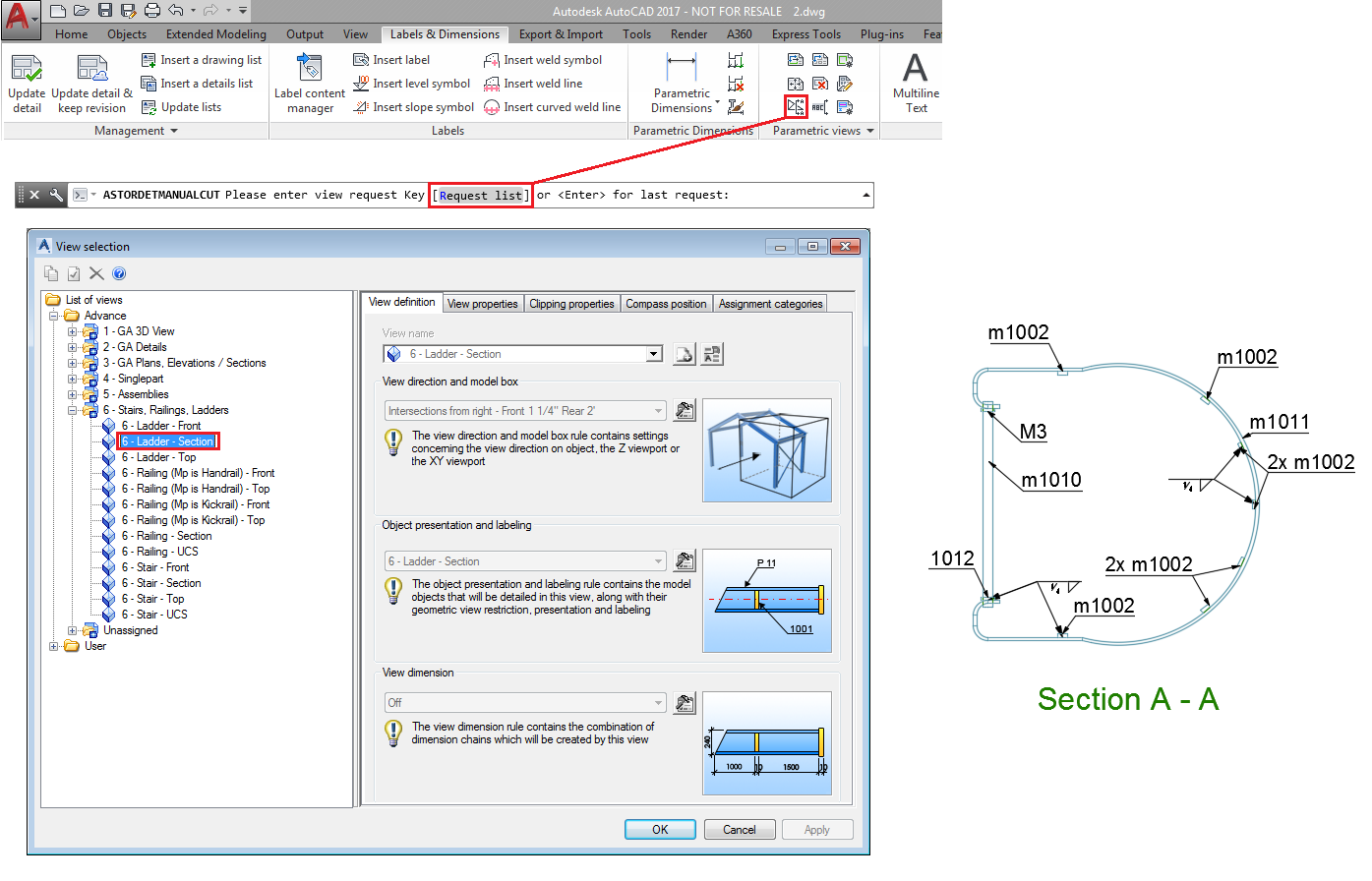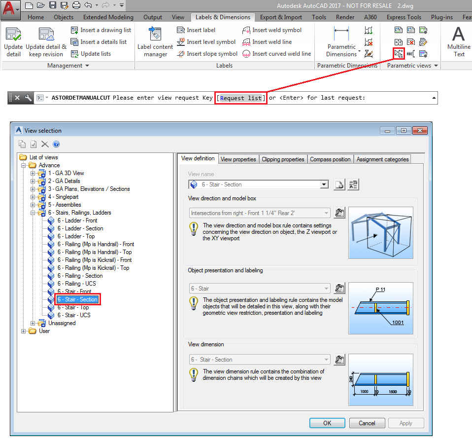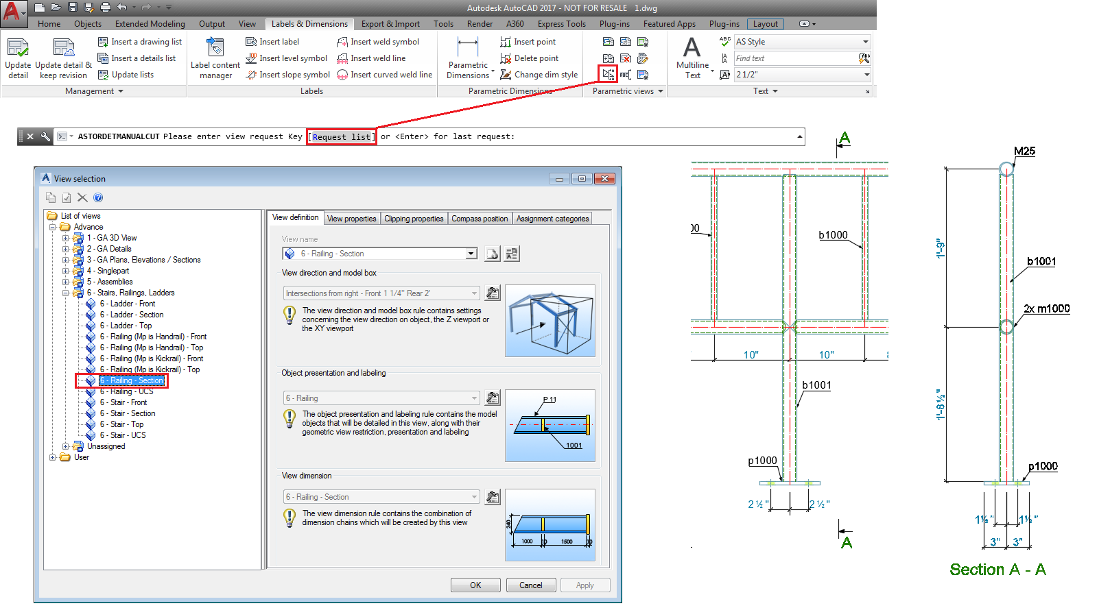 La vue en coupe de garde-corps peut être créée manuellement sur le plan d'assemblage (si nécessaire).