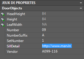 Cette procédure permet d'entrer les valeurs des propriétés manuelles dans le jeu de propriétés d'un ou plusieurs objets. Par exemple, pour entrer une remarque s'appliquant à plusieurs portes d'un dessin, vous pouvez sélectionner les portes et entrer la remarque en tant que données dans Notes.