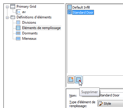 Cette procédure permet de supprimer une définition d'élément de remplissage dont vous n'avez plus besoin. Cependant, vous ne pouvez pas supprimer une définition actuellement affectée à une cellule dans la grille principale ou une grille imbriquée. En outre, vous ne pouvez pas supprimer la définition d'élément de remplissage par défaut, mais vous pouvez la modifier au besoin.