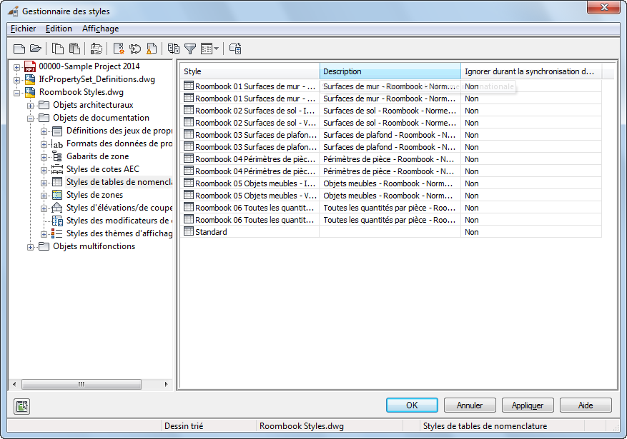 - Dans le Gestionnaire des styles, ouvrez Roombook Styles.dwg.