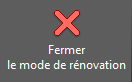 Vous pouvez mettre fin à une session de rénovation en cliquant sur l'outil Fermer le mode de rénovation dans le groupe de fonctions Rénovation. Vous pouvez réactiver le mode de rénovation à tout moment.