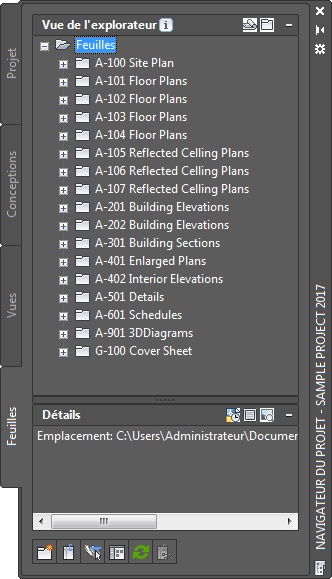 Au sein de la structure du projet, les catégories de base sont représentées par des dossiers dans l'explorateur de dessins. Elles vous permettent de classer vos fichiers de projet par discipline, type de dessin et autre flux de travail.