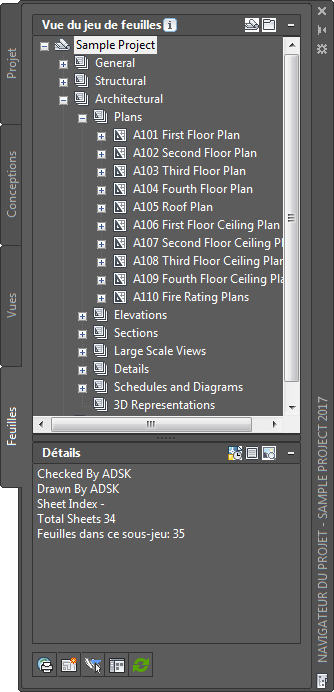 Vous pouvez réorganiser les feuilles en différents sous-jeux de feuilles dans la vue du jeu de feuilles, sans que cela ne change leur emplacement physique dans la catégorie ou le dossier. De la même manière, lorsque vous supprimez une feuille d'un sous-jeu de feuilles dans l'onglet Vue du jeu de feuilles, seule la référence à la feuille est supprimée ; la présentation et le dessin multi-feuilles sont conservés dans le dossier ou le sous-dossier des feuilles.