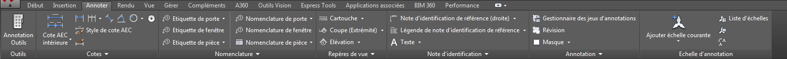 L'onglet Annoter contient des commandes permettant de marquer les fichiers de dessin.