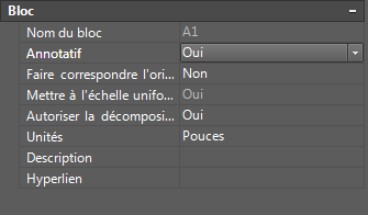 - Dans la palette des propriétés, sous Bloc, sélectionnez Oui pour l'option Annotatif.