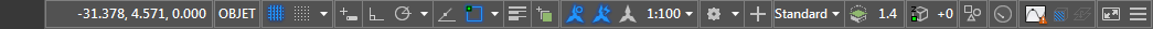 La barre d'état affiche la position du curseur, les outils de dessin et les outils qui ont une incidence sur l'environnement de dessin.