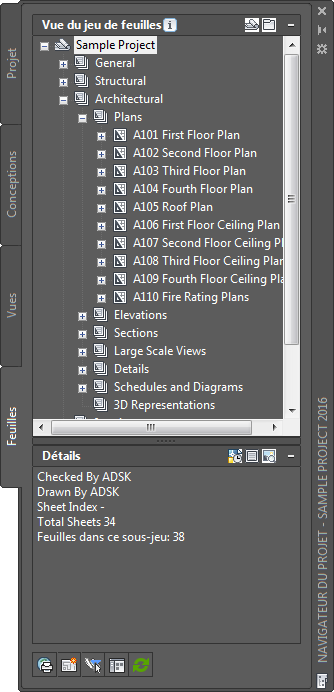 Jeu de feuilles du projet dans le Navigateur du projet AutoCAD Architecture