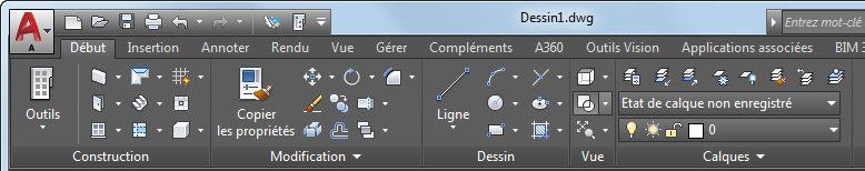 L'espace de travail est conçu pour simplifier la recherche d'outils et de commandes dont vous avez besoin pour la tâche en cours.