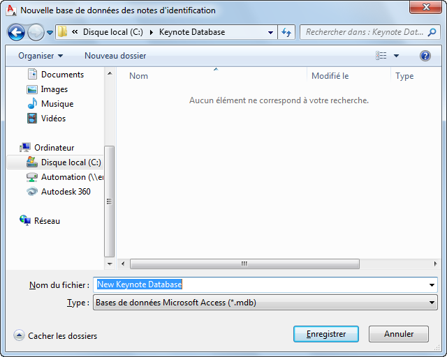Cette procédure permet de créer une base de données Microsoft Access vierge contenant toutes les tables et requêtes nécessaires pour le stockage et l'extraction des notes d'identification. La première étape consiste à créer une base de données des notes d'identification à l'aide de l'Editeur des notes d'identification.