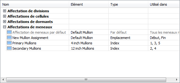 Une nouvelle affectation de meneaux s'affiche dans la liste des affectations de meneaux.