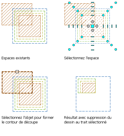 Si les contours des espaces sont déterminés par différentes méthodes, c'est la méthode utilisée pour le premier espace sélectionné qui prend effet pour l'espace résultant.
