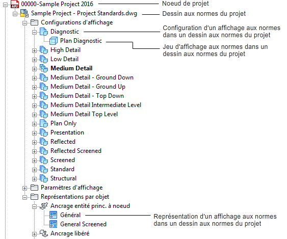 Les paramètres d'affichage qui figurent dans le dessin d'affichage aux normes du projet et dans les dessins du projet possèdent tous une version. Cette version permet de déterminer si un paramètre d'affichage doit être mis à jour pendant la synchronisation. L'identificateur unique global (GUID), la date et l'heure de la dernière modification, le nom de connexion Windows de la dernière personne ayant modifié l'objet et un commentaire facultatif font partie des informations consignées dans les informations sur la version.