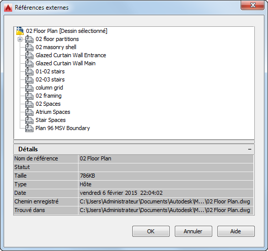 - Dans la boîte de dialogue Références externes, observez les détails de la Xréf :