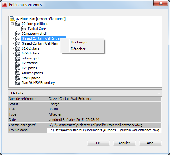 Vous pouvez décharger, recharger ou détacher la Xréf attachée.