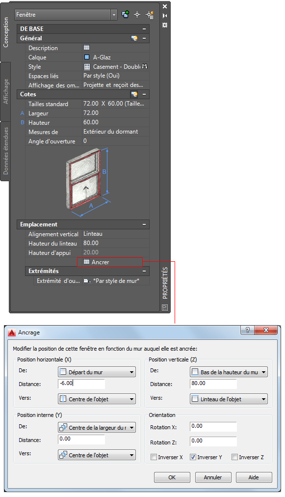Les propriétés d'un objet sont saisies et modifiées dans la palette des propriétés. La plupart des propriétés sont directement saisies et aussitôt actualisées à l'écran. Certains objets possèdent des propriétés complexes qui sont saisies dans les fiches de travail accessibles via la palette des propriétés.