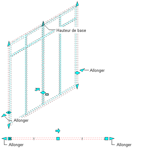 Affichage des poignées de hauteur de base et d'allongement d'unité de mur-rideau