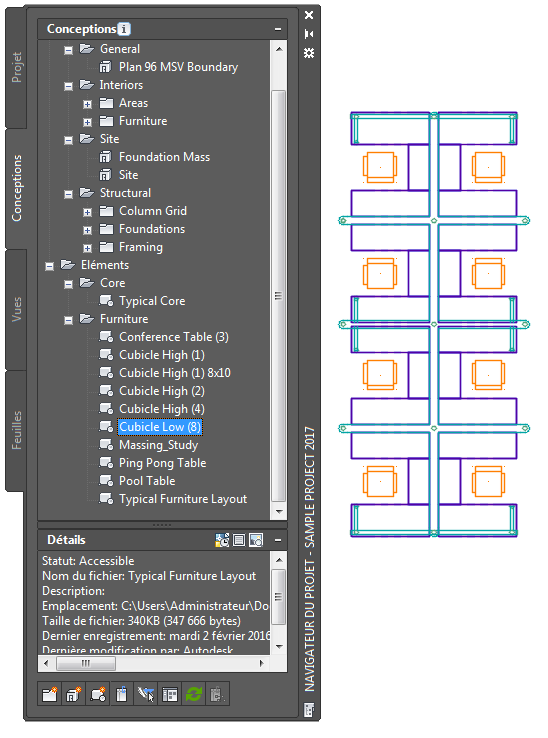 L'élément s'ouvre dans la zone de dessin d'AutoCAD Architecture. Vous pouvez alors la modifier.
