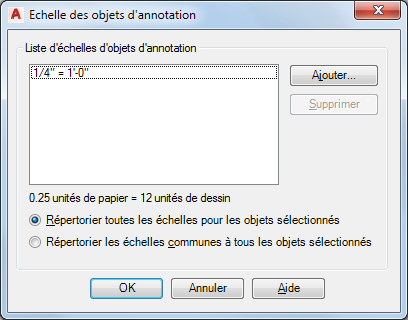 - Dans la boîte de dialogue Echelle des objets d'annotation, cliquez sur Ajouter.