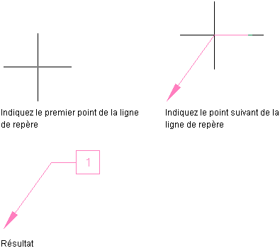 Cette procédure permet d'ajouter un symbole basé sur un bloc avec une ligne de repère désignant un point donné dans la zone de dessin.