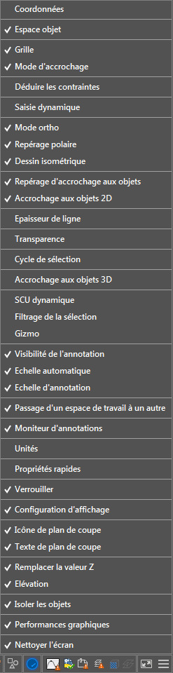 A l'extrémité droite de la barre d'état, cliquez sur l'icône Personnalisation.