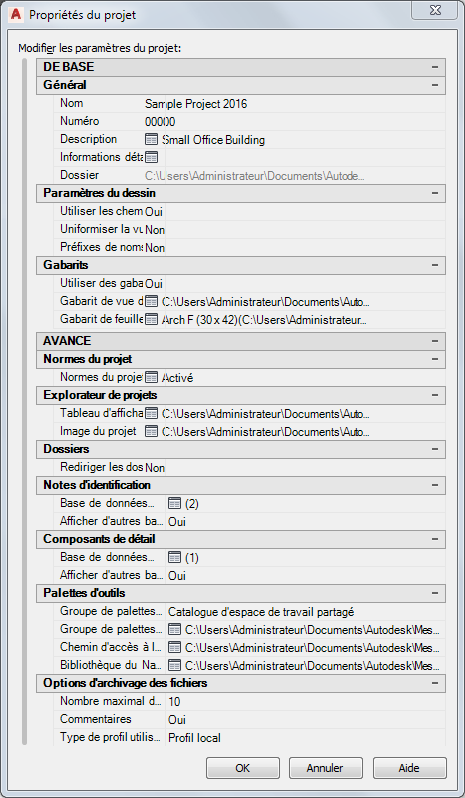 Projet hérité d'Autodesk Architectural Desktop 2005 | Renvoie à un nouveau fichier ATC vide sous \<Nom du projet>\Standards\ WorkspaceToolPalettes\ <Nom du projet>.atc | Créé, mais pas affiché. |