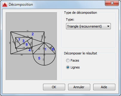 Cette procédure permet de spécifier le type des sous-entités issues de la décomposition d'un espace et le type des entités AutoCAD issues de la conversion de l'espace décomposé.