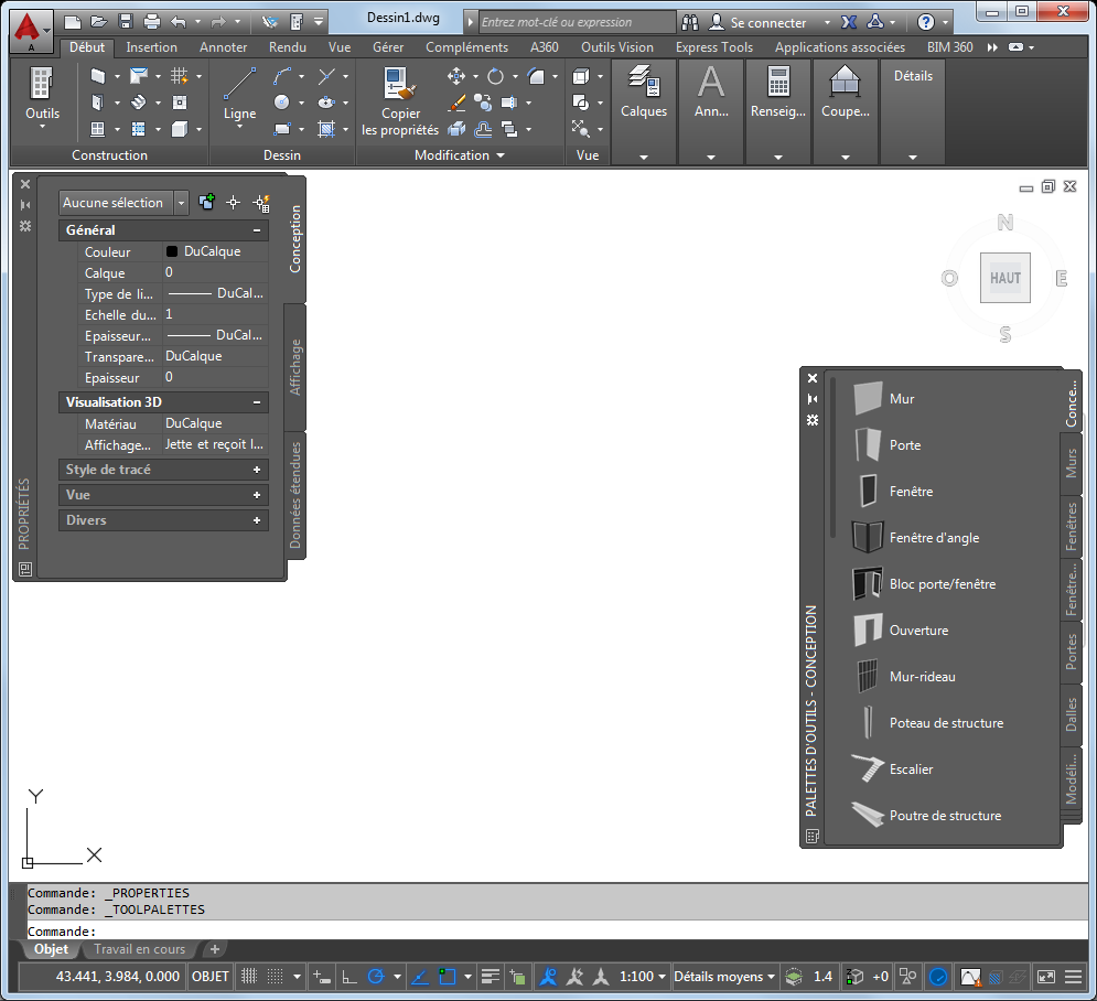 Configuration par défaut de l'espace de travail AutoCAD Architecture