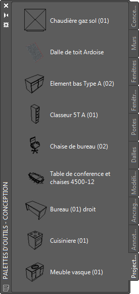 Une fois ajoutée, la palette reste dans le jeu concerné, de sorte qu'elle est disponible chaque fois que vous démarrez AutoCAD Architecture.