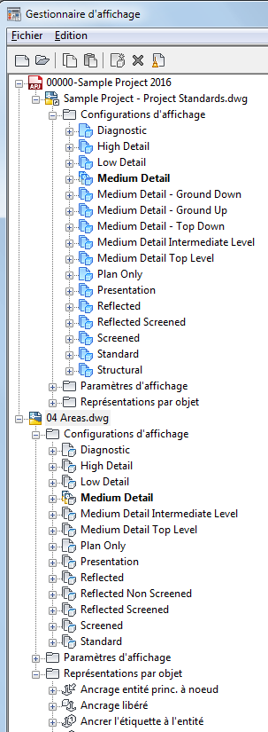 Il est possible de synchroniser chacun des composants du système d'affichage dans un dessin de projet.