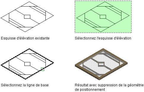 Conseil : Si vous tracez votre dessin au trait dans le plan XY (dans une vue en plan) et acceptez la ligne de base par défaut, le bloc porte/fenêtre résultant est affiché à partir la direction Z .