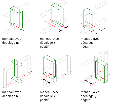 Y | Dans une vue en plan, un décalage Y positif déplace les meneaux au-dessus de la ligne de base, tandis qu'un décalage Y négatif les déplace au-dessous. |