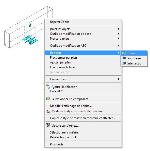 Lorsque vous modifiez sur place un modificateur de corps, vous pouvez changer sa forme avec les poignées et utiliser des commandes booléennes pour ajouter ou supprimer d'autres objets du modificateur de corps.