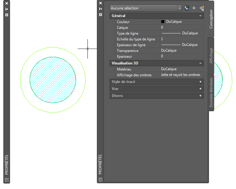 La palette des propriétés est masquée, à l'exception de la barre de titre.