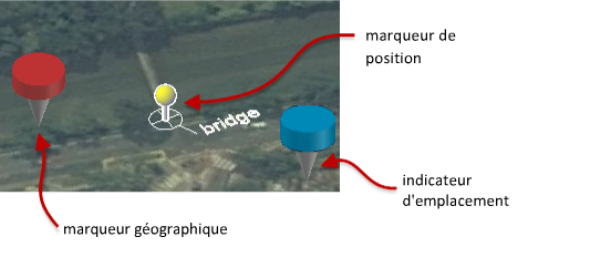 Les marqueurs de position sont des annotations placées dans l'espace objet pour marquer et étiqueter un emplacement géographique.