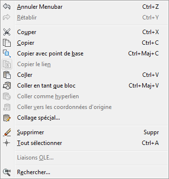 L'exemple suivant montre l'élément de menu Liaisons OLE dans le menu Edition marqué d'une coche et l'image de l'élément de menu Copier le lien est mise en surbrillance avec une bordure.