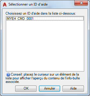 Voici un exemple d'info-bulle détaillée créée pour un produit basé sur AutoCAD 2009. Vous devez modifier le texte gras et en italique.
