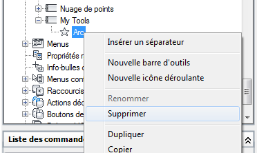 - A l'aide du bouton droit de la souris, cliquez sur la commande ou sur le contrôle à supprimer. Cliquez sur le bouton Supprimer.