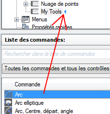 - Dans le volet Liste des commandes, faites glisser la commande que vous voulez ajouter à la barre d'outils dans le volet Personnalisations dans <nom de fichier>.