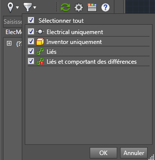 Remarque : Ce bouton n'est disponible que si vous possédez un projet AutoCAD Electrical lié à Inventor.