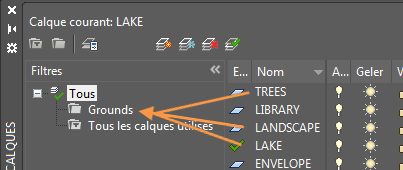 Pour filtrer les calques par nom, entrez du texte et des caractères génériques tels que * dans la colonne Nom.