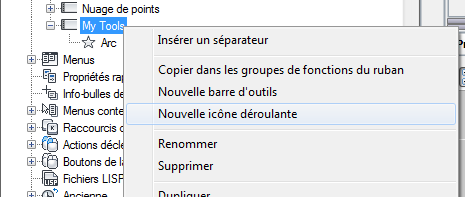 Création d'une icône déroulante à partir d'une autre barre d'outils