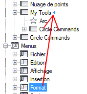 1. Dans le volet Personnalisations dans <nom de fichier> de l'onglet Personnaliser, cliquez sur le signe Plus (+) en regard du noeud Barres d'outils pour le développer.