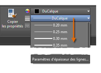 Vous pouvez aussi affecter les épaisseurs de ligne depuis le groupe de fonctions Propriétés.