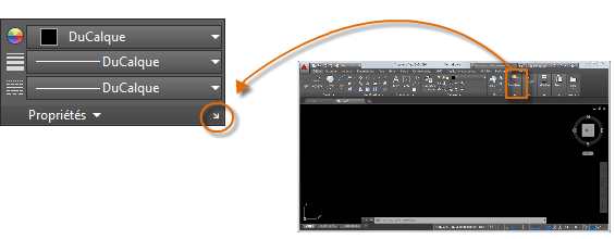 La palette Propriétés est un outil essentiel. Pour l'ouvrir, utilisez la commande PROPRIETES (entrez PR dans la fenêtre de commande), appuyez sur Ctrl + 1 ou cliquez sur la petite flèche dans le groupe de fonctions Propriétés de l'onglet Début, selon ce qui vous convient.