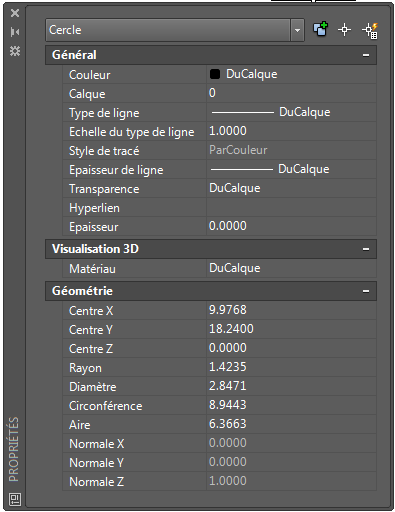 Lors de l'affichage des propriétés des objets AutoCAD dans AutoCAD LT, il se peut que certaines d'entre elles soient indisponibles.