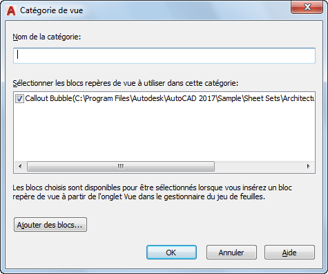 Sélectionner les blocs repères de vue à utiliser dans cette catégorie