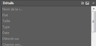 L'aperçu s'affiche uniquement si une seule référence de fichier est sélectionnée dans ce volet. Ce volet de données ne contient pas d'autre contrôle. Si aucune référence de fichier n'est sélectionnée, le volet Aperçu affiche un champ de solide gris. Si aucun aperçu n'est disponible, le texte Aperçu non disponible s'affiche au centre du volet.